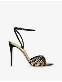 PRODUCT DETAILS - Casadei suede heeled sandals - 100% suede - Adjustable buckle fastening - Open round toe, cross-over front straps, triangle stud-embellished straps, ankle strap, metallic-leather trim, stiletto heel - Heel height 3.1” - Specialist leather clean - Made in Italy - Upper: 100% suede - Lining: 100% leather - Sole: 100% leather Ref: R04493409