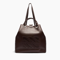The Dome bag is an embodiment of understated elegance and timeless functionality. Made of soft cocoa-colored leather, this bag adapts perfectly to every movement, maintaining a shape that is always fluid and refined. The logo, embroidered by hand ton sur ton, adds a touch of sophisticated discretion, while the long handles, designed to be worn comfortably on the shoulder, complete the design, lending practicality and style. Ideal for those seeking a versatile accessory that combines class and comfort for any occasion. Details - Nappa leather - 100% Calf - Height 34 cm - Width 34 cm - Depth 20 cm - Shoulder Strap 30 cm - 100% Made In Italy - Code: 3W471J0000NAPON2403