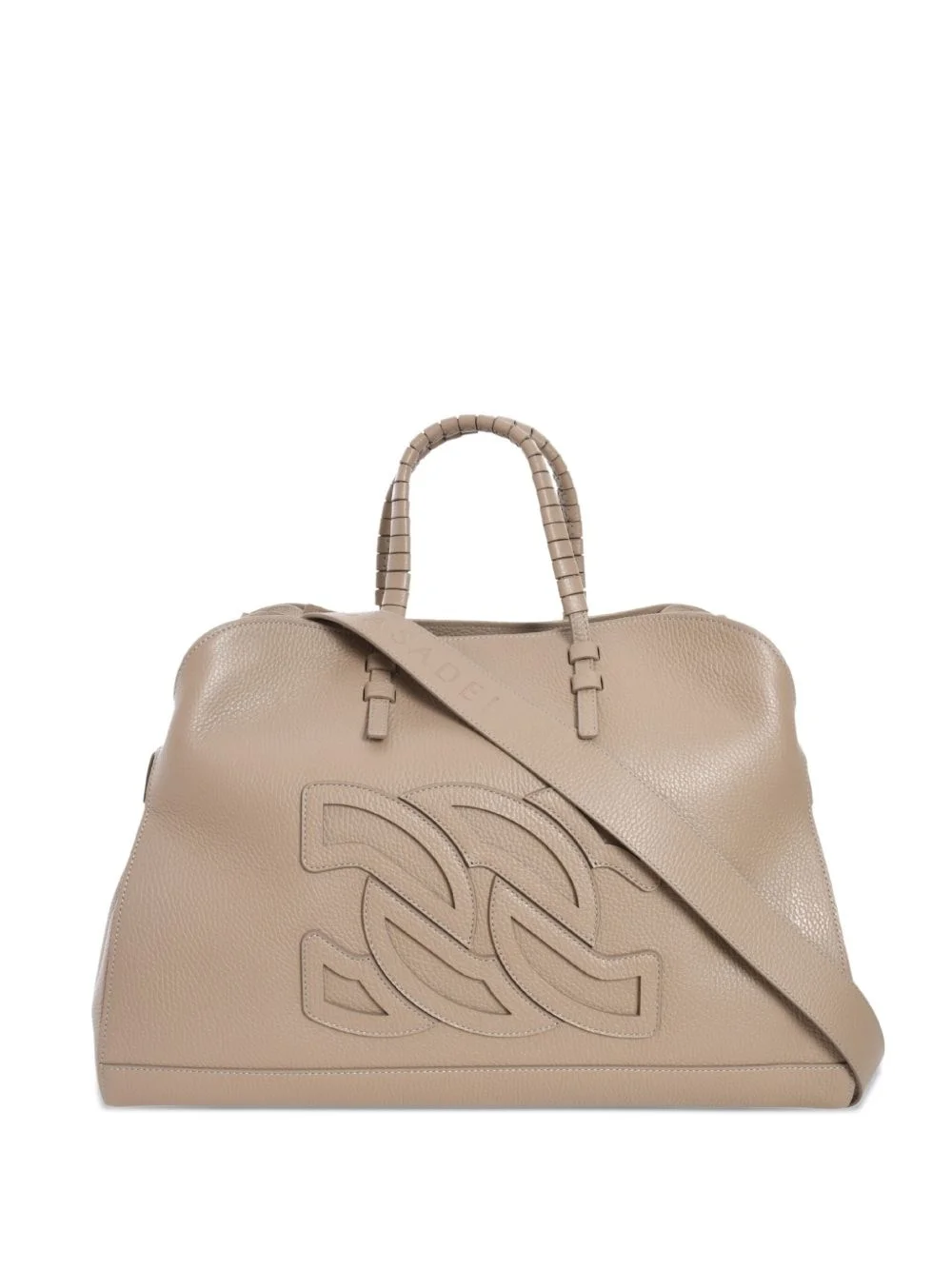 double C embossed leather tote bag Highlights - Beige - Two top handles - Detachable shoulder strap - Braided detailing on handles - Zip closure Made in Italy Composition Outer: Calf Leather 100% SIZE & FIT Measurement DEPTH 8.66 in(22 cm) HEIGHT 11.81 in(30 cm) WIDTH 17.32 in(44 cm)