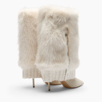 Designed for those who love to stand out even at high altitudes, Casadei presents the Double Face boot. Made from white faux fur with a mink effect, this model reinterprets apres-ski style with a couture twist. The decorative buttons, inspired by classic ski bombers, add a sporty-chic detail that enhances the boot’s sophisticated spirit. The 8 cm stiletto heel elongates the silhouette, maintaining a feminine allure even in the coldest settings. A true must-have in the winter wardrobe for those seeking a boot that combines warmth, style, and personality Details - Suede calfskin leather, mink-effect faux-fur - 50% Calf and 50% Polyester - Leather covered heel 80mm/3.1 inches - 100% Made In Italy - Code: 1S398A0801T0561B329