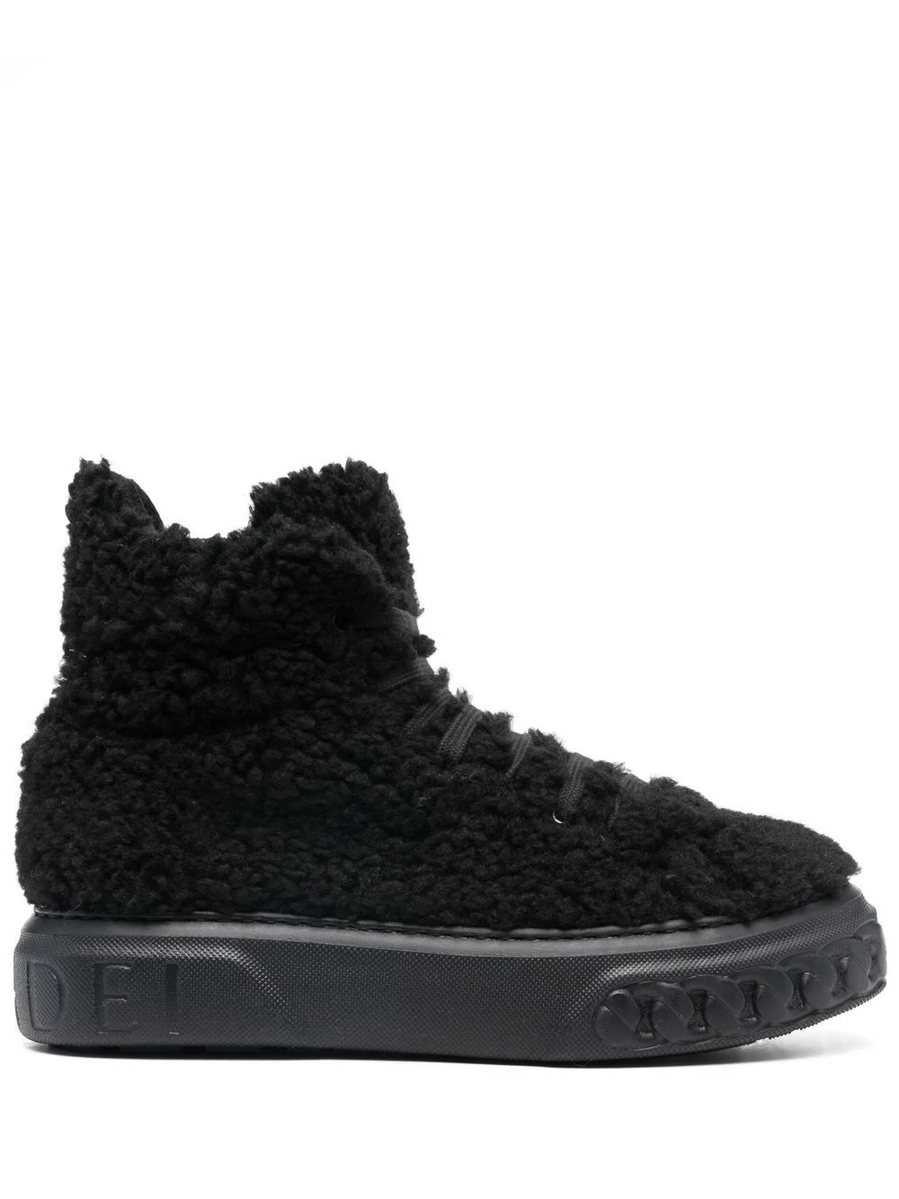 Ecosheep lace-up combat boots black merino wool/calf leather silver-tone logo plaque round toe front lace-up fastening branded insole flat rubber sole Made in Italy Composition Lining: Artificial Fur 100% Outer: Artificial Fur 100% Sole: Rubber 100% SIZE & FIT Measurement HEEL 2.16 in(5.5 cm) HEIGHT 5.7 in(14.5 cm) PLATFORM 1.57 in(4 cm)