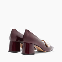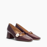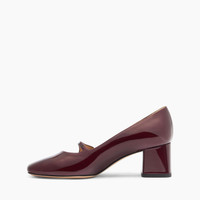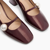Casadei presents for the Fall/Winter 25-26 collection the Mary Jane in samurai, a black cherry-colored patent leather, one of the signature colors of this collection. The chunky, squared 5cm heel assures all-day comfort, and the strap with pearl button closure secures the fit. Ideal for completing a casual chic look. Details - Patent leather with soft metallic finish to highlight the colour and brilliance - 100% Calf - Patent leather covered heel 50 mm / 1.9 inches - 100% Made In Italy - Code: 1F011A0501SAMUR4408
