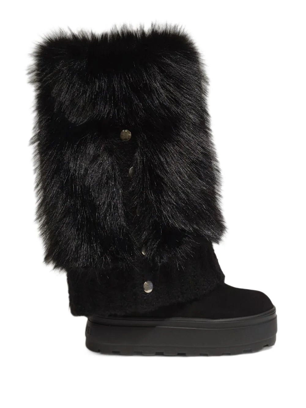 faux-fur boots Highlights - Black - Faux-fur panel - Button detailing - Platform sole - Round toe - Ridged sole Made in Italy Composition Outer: Calf Leather 100%, Artificial Fur 100% Sole: Rubber 100% Lining: Artificial Fur 100%, Calf Leather 100%