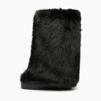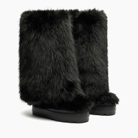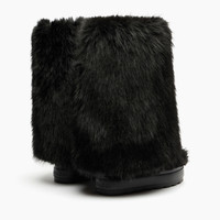 Bold, enveloping, and irresistibly glamorous. The double-faced black faux fur boot with a mink-effect finish combines comfort and style with a daring attitude. Inside, a hidden wedge adds a few extra centimeters, enhancing the silhouette without ever compromising on comfort. The chunky lug sole ensures excellent grip on any surface. Perfect for colder days, thanks to the plush faux fur lining that provides warmth and softness. The custom sole detail with the iconic C-Chain makes this model one-of-a-kind, designed to leave an unmistakable style mark wherever you go. Details - Mink-effect faux-fur - 100% Polyester - Rubber shoe bottom 80 mm / 3.1 inches - 100% Made In Italy - Code: 2S397A081NSUBZE9000