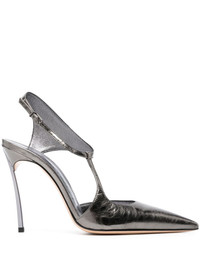 Super Blade Melody 100mm metallic pumps Highlights - Gunmetal grey - Calf leather - Metallic effect - Branded footbed - Pointed toe - Buckle-fastening ankle strap - 100mm high heel Made in Italy Composition Sole: Calf Leather 100% Outer: Calf Leather 100% Lining: Calf Leather 100% SIZE & FIT Measurement HEEL 3.93 in(10 cm)