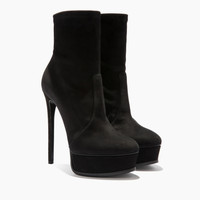 The seductive feel of these stretch suede ankle boots is emphasised by the towering stiletto heel, which is softened by the sinuous platform and adds a glamorous accent to the female form. These ankle boots thus becomes the perfect luxury accessory for urban-chic style with a bold feel. Details - Born to make a statement, these ankle boots are set on a towering stiletto heel while the platform balances the fit. The stretch suede gives a second-skin feel and makes them easy to wear. - Code: 1R627L1401T00059000