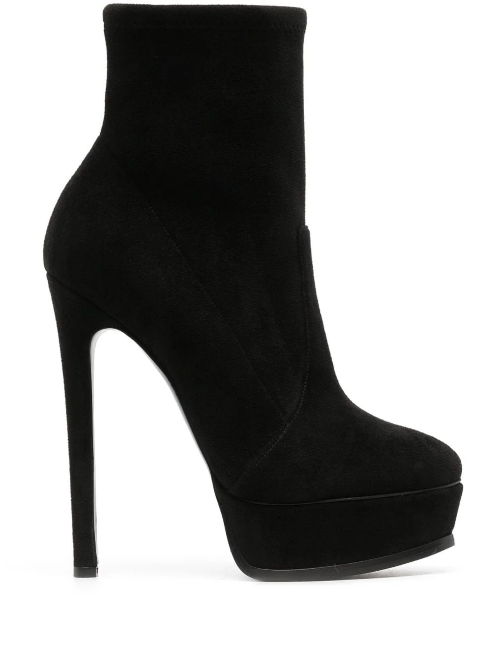Flora 140mm platform ankle boots Highlights - Black - Calf suede - Pull-on style - Round toe - Ankle-length - 40mm platform sole - 140mm stiletto heel Made in Italy Composition Suede 100% SIZE & FIT Measurement CIRCUMFERENCE 9.44 in(24 cm) HEEL 5.7 in(14.5 cm) HEIGHT 5.15 in(13.1 cm) PLATFORM 1.57 in(4 cm)