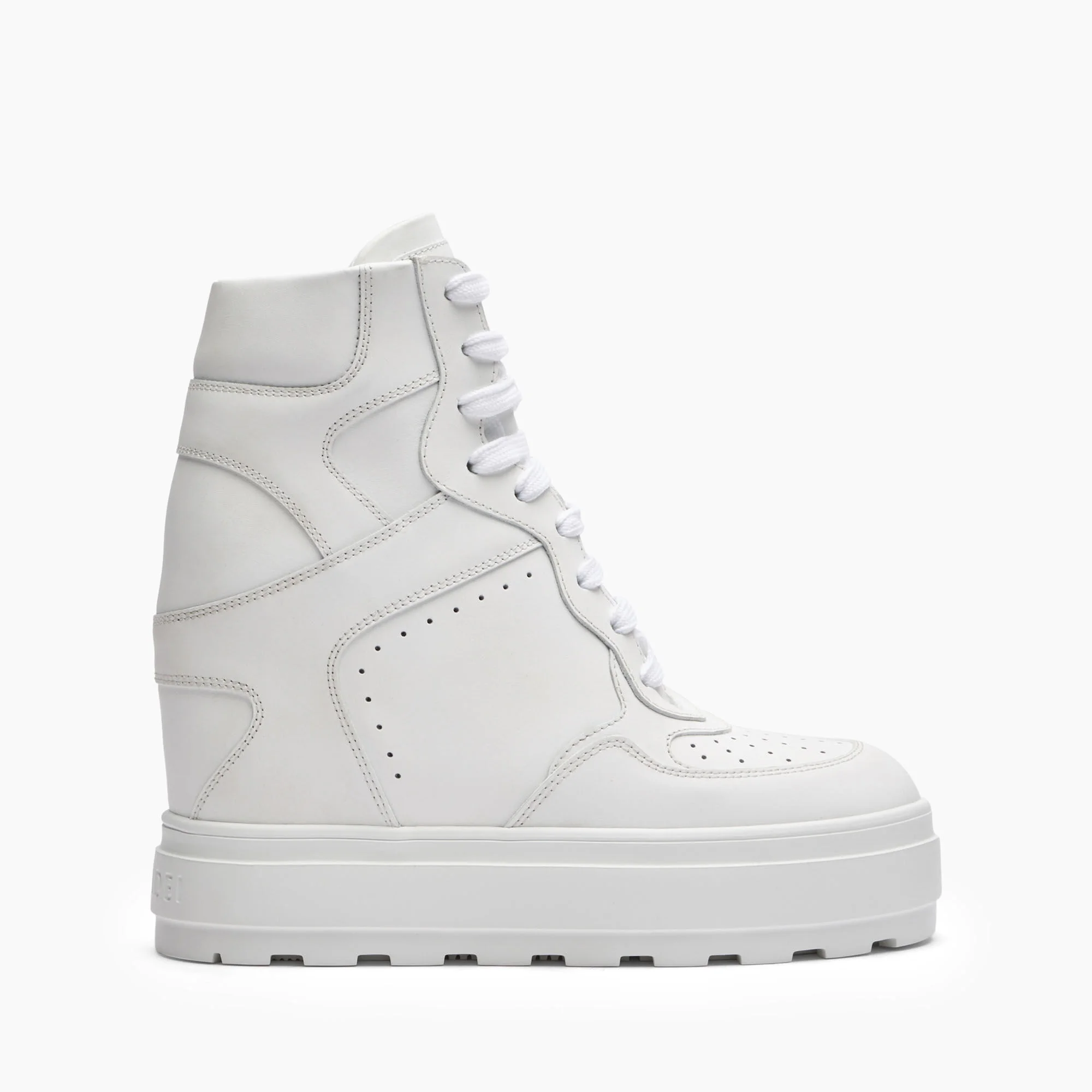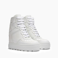 Casadei's iconic white leather lace-up High Top trainer meets distinctive elements including an eight-centimetre hidden wedge and a personalised Casadei rubber sole. Designed for all those who love height without sacrificing all-day comfort. Details - Calfskin Leather - 80Mm / 3,1 Inches Rubber Shoe Bottom. - 100% Calf Leather - 100% Made In Italy - Code: 2X023Y0801SALEN9999