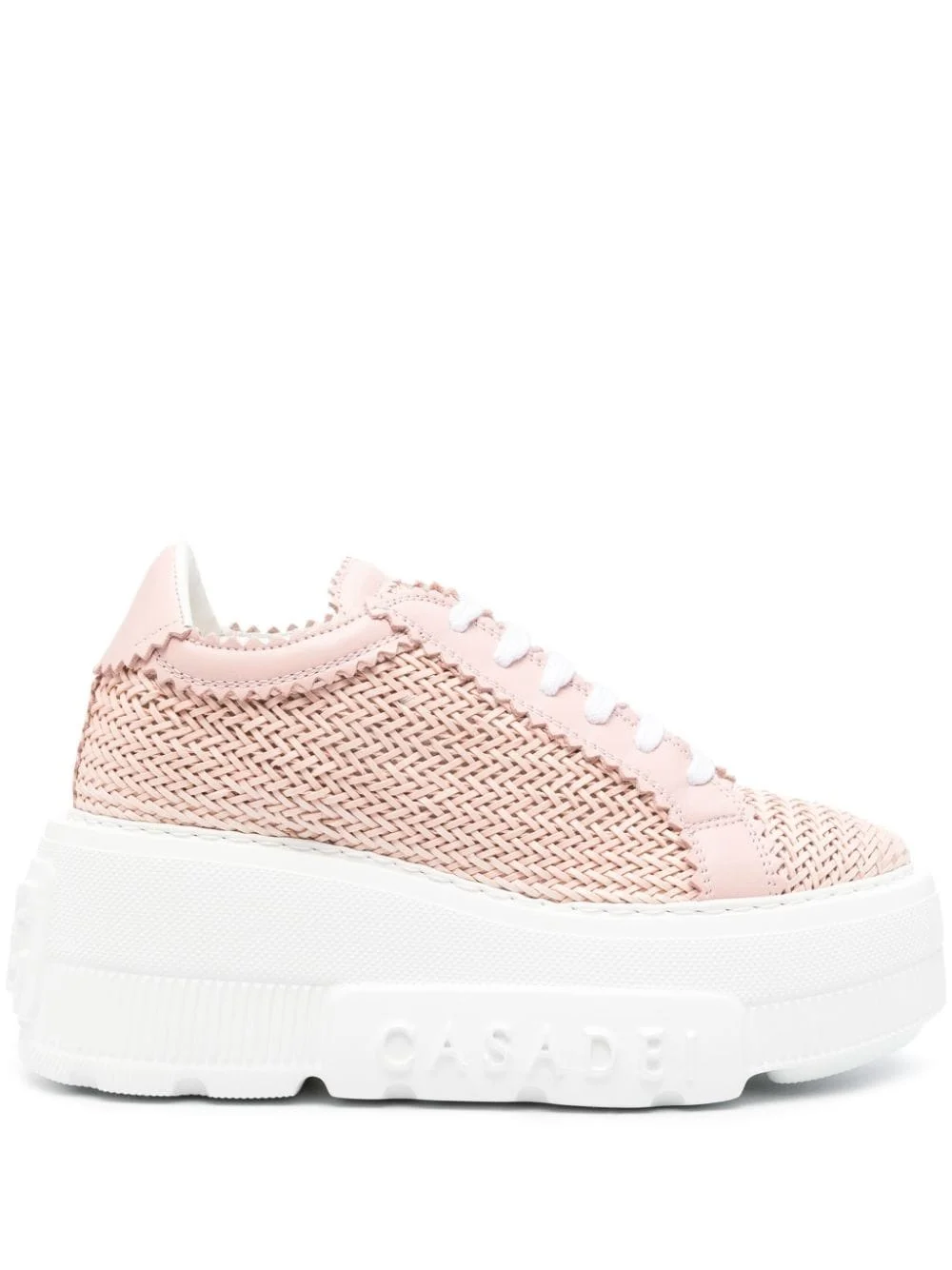 Hanoi Nexus leather sneakers Highlights - Light pink - Calf leather - Interwoven design - Round toe - Front lace-up fastening - Branded insole - Platform wedge - Chunky rubber sole Made in Italy Composition Leather 100% SIZE & FIT Measurement HEEL 2.75 in(7 cm) PLATFORM 1.96 in(5 cm)