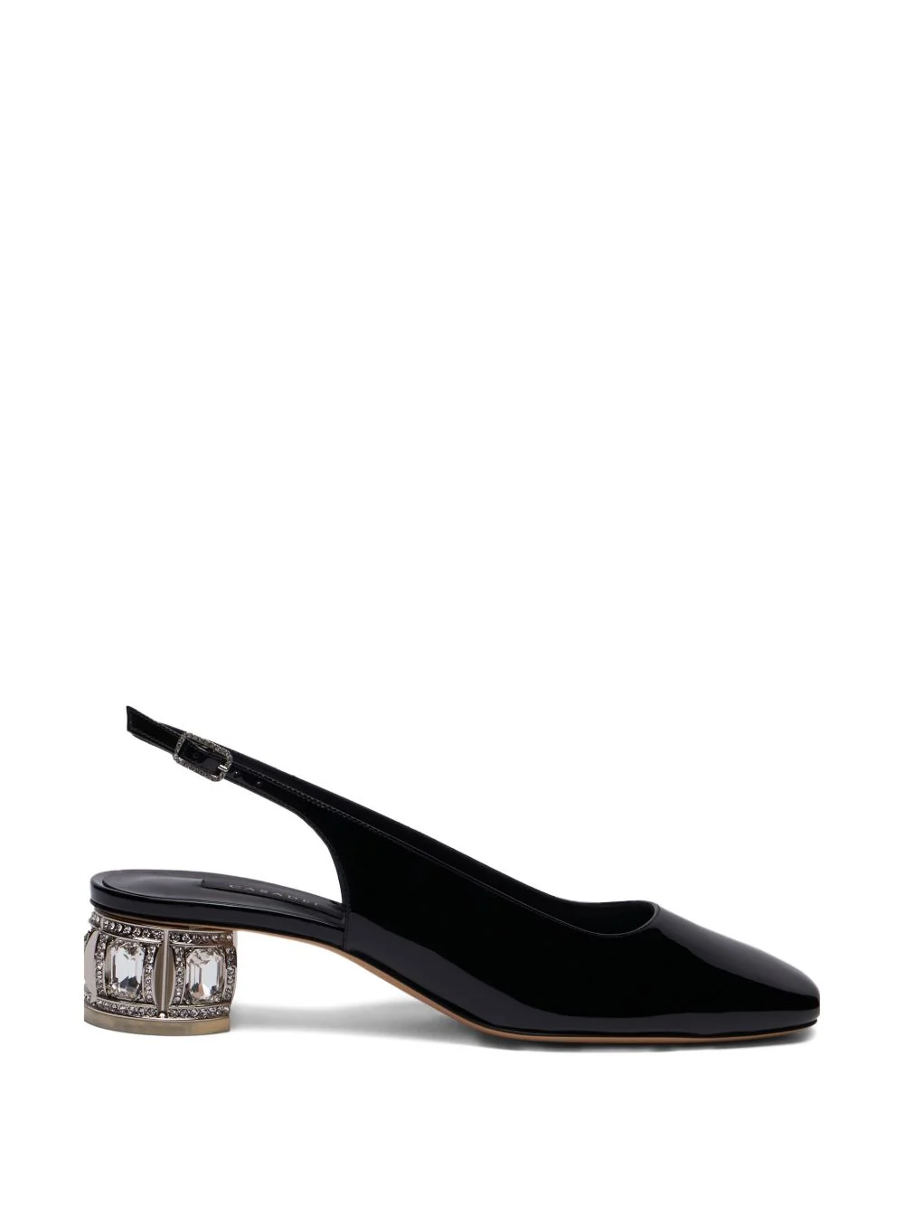 jewel-embellished slingback pumps Highlights - Black - Patent finish - Buckled slingback strap - Square toe - Jewel-embellished heel Made in Italy Composition Outer: Patent Calf Leather 100% Sole: Calf Leather 100%