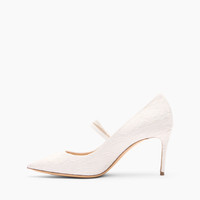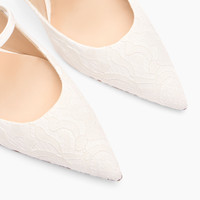 For the Fall/Winter 2025 collection, Casadei presents the Liberty decollete in white patent fabric, enriched with elegant lace details. The model is distinguished by an 8 cm stiletto heel. Designed for bold and feisty women, this shoe combines the sophistication of lace with a sophisticated design, creating a unique personality that catches the eye on any occasion. The instep strap ensures a perfect fit, while the refined metallic mesh detail with the iconic C-Chain logo adds an exclusive touch. Details - Varnished fabric with tone-on-tone lace - 39% Polyurethane, 25% Cotton, 20% Polyester and 16% Nylon - Varnished fabric covered heel 80 mm / 3.1 inches - 100% Made In Italy - Code: 1F014A0801T05209999