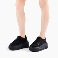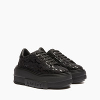 Seasons change but the Nexus sneaker never loses its appeal! Made of black patent fabric with ton sur ton lace applique, this sneaker adds a sensual and edgy touch to your look. With a techno-futuristic bottom and an ultra-lightweight wedge with an innovative design, the Nexus is a true must-have for the season. The iconic C-chain element and maxi logo on the side add a distinctive touch, making this model the flagship of the Maison. Details - Varnished fabric with tone-on-tone lace - 39% Polyurethane, 25% Cotton, 20% Polyester and 16% Nylon - Ultra-light wedge with the Casadei logo on the outside and C-chain logo underneath the sole 70 mm / 2.7 inches - 100% Made In Italy - Code: 2X894U070NT05429000