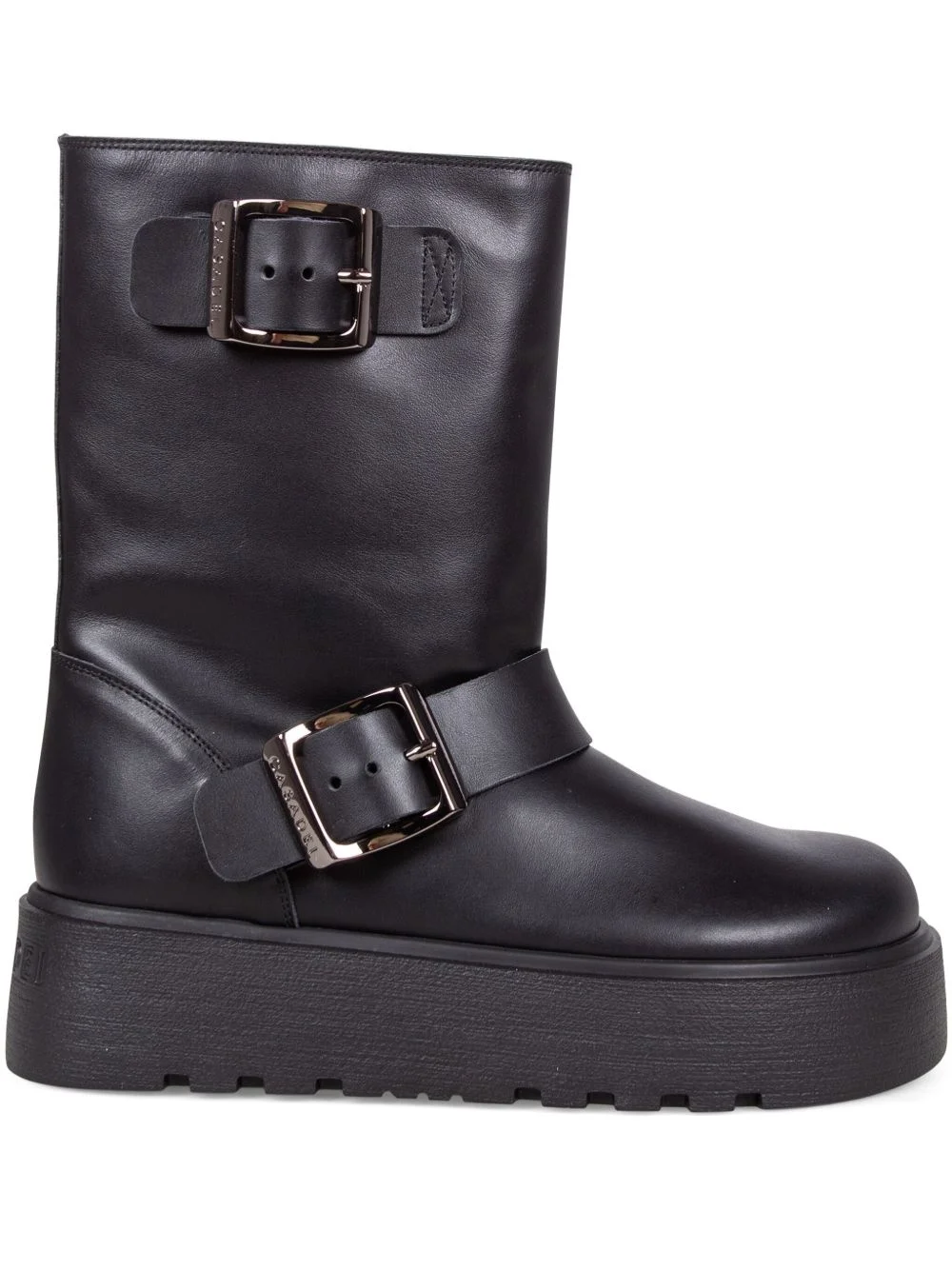 leather boots Highlights - Black - Calf leather - Smooth grain - Slip-on style - Decorative buckle detail - Round toe - Branded leather insole - Flat rubber sole - Mid-calf length Made in Italy Composition Leather 100% SIZE & FIT Measurement HEEL 1.57 in(4 cm)