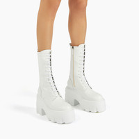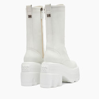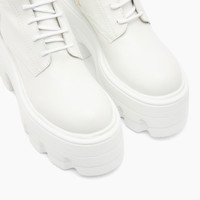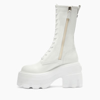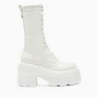 Casadei's biker boots in white calf leather are a gritty touch for an urban look. The imposing sole with layered textures makes the MAXXXI the absolute star of this cyberpunk look that is poised between high-tech and underground pop. Equipped with laces and a pull-tab at the back, these biker boots are the perfect combo of comfort and modernity. Details - Calf Leather - 100% Calf Leather - 70-Mm/2.7-Inch Oversized Rubber Sole With 60-Mm/ 2.3-Inch Platform - 100% Made In Italy - Code: 2R360Z0701C15119999