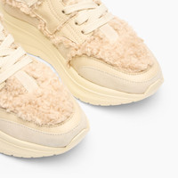 Cesare Casadei, Creative Director of the Maison, has always described his ideal of a woman as one who is free to express herself at her best. And it is precisely for this reason that he designed the Mia bottom trainer, a runner sole in extra light material that ensures stability and lightness without sacrificing the aerodynamic design that makes it feminine. In suede with a ton sur ton faux fur lining, this trainer sees the wearer as a free, casual, alternative and elegant woman in one look. Details - Doubled suede with curly shaved faux fur - 50% Calf and 50% Polyester - Rubber shoe bottom 20 mm / 0.7 inches - 100% Made In Italy - Code: 2J924A0211MIAMOMTCL
