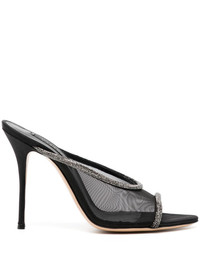 110mm Mimi sandals Highlights - Black - Mesh design - Crystal embellishment - Pointed peep toe - Open back - Branded leather insole - 110mm high heel - Leather sole - Slip-on style Made in Italy Composition Sole: Calf Leather 100% Outer: Polyester 100% Lining: Calf Leather 100% SIZE & FIT Measurement HEEL 4.33 in(11 cm) Sole height 0.19 in(0.5 cm)