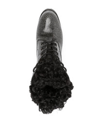 Nancy Alpi 140mm textured-finish boots Highlights - Black - Leather - Shearling - Textured finish - Almond toe - Front lace-up fastening - High block heel - Rubber sole - Platform sole Made in Italy Composition Lining: Leather 100%, Artificial Fur 100% Outer: Artificial Fur 100%, Leather 100% Sole: Rubber 100% SIZE & FIT Measurement HEEL 5.51 in(14 cm) HEIGHT 4.72 in(12 cm) PLATFORM 1.96 in(5 cm)