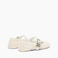 Clean lines and the use of white-colored curly faux fur make the Valsenales ballerina the perfect companion for a casual chic look on a cool fall day. The comfortable fit allows you to start the morning on the right foot, while the unmistakable C-Chain buckle makes this model truly unique. Casadei reinterprets the classic ballerina by making it ultra lightweight with a rubber sole that ensures optimal comfort. Details - Nappa Leather, curly faux lambskin fur - 50% Polyester and 50% Kid - Rubber shoe bottom - 100% Made In Italy - Code: 1A298A0111C28719999