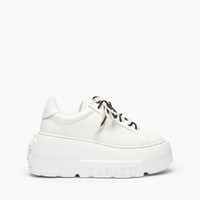White leather Nexus sneakers reinterpret urban style with a bold, contemporary twist. The maxi sole, featuring the Casadei logo in relief, adds height and a decisive allure, combining aesthetics and functionality. The laces in three contrasting shades emphasise the dynamic character of the model, transforming a technical detail into a style element. A shoe that blends minimalism and statement, designed for those who want to stand out with personality. Sneakers with a contemporary design, light and versatile. Perfect for everyday urban wear, they add a touch of understated style to any casual look. Details - Calf leather - 100% Calf - Ultra-Light Wedge With The Casadei Logo On The Outside And C-Chain Logo Underneath The Sole In 70 Mm / 2.7 Inches - 100% Made in Italy - Code: 2X094B0701C29869999