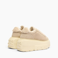 For colder days, the Alpsenales Nexus Sneaker is your ideal ally. A creation with a techno-futuristic bottom, camel-colored suede leather and a ton sur ton curly faux fur lined interior. An ultra-lightweight wedge with a modern design that makes it a must-have for the season. The iconic C-Chain element as well as the maxi logo on the side, give a characterizing element impossible not to recognize to the Maison's flagship sneaker. Details - Doubled suede with curly shaved faux fur50% Polyester and 50% KidUltra-light wedge with the Casadei logo on the outside and C-chain logo underneath the sole 70 mm / 2.7 inches - Code: 2X924Z0711T05439607
