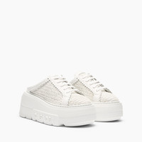 For Nexus sneaker lovers, Casadei offers for this Spring/Summer25 the sabot sneaker in white vegan vegan leather raw cut woven stripes. Ideal for summer outfits without sacrificing comfort and style. Details - Synthetic woven - 100% Polyurethane - Ultra-Light Wedge With The Casadei Logo On The Outside And C-Chain Logo Underneath The Sole In 70 Mm / 2.7 Inches. - 100% Made In Italy - Code: 2X068J0701HANOI9999