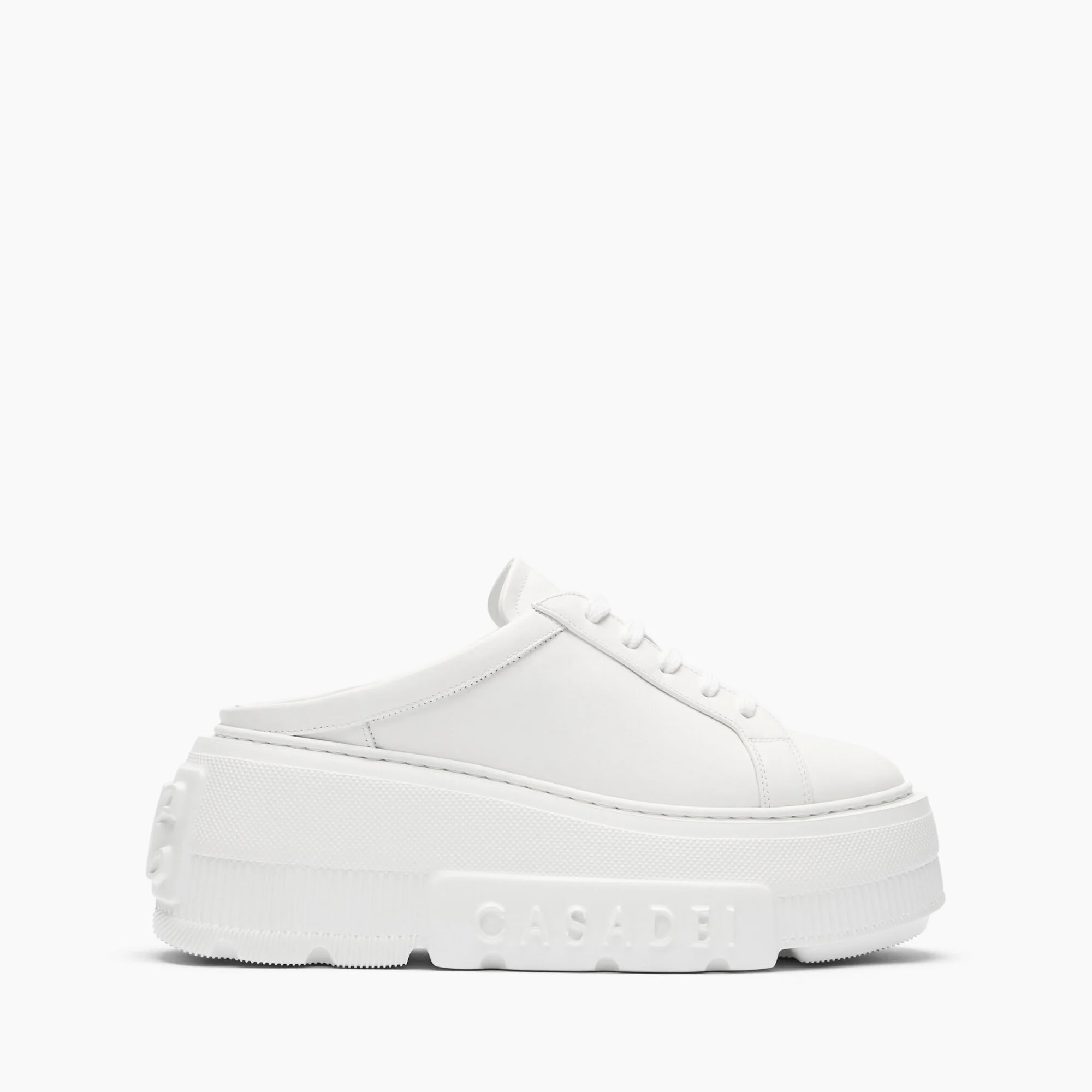 For Nexus sneaker lovers, Casadei offers for this Spring/Summer25 the white vegan leather raw cut sabot sneaker. Ideal for summer outfits without sacrificing comfort and style. Details - Calfskin - 100% Calf - Ultra-Light Wedge With The Casadei Logo On The Outside And C-Chain Logo Underneath The Sole In 70 Mm / 2.7 Inches. - 100% Made In Italy - Code: 2X067J0701SALEN9999