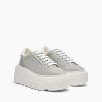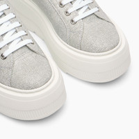 Casadei reinterprets the Nexus sneaker with a refined and luminous spirit thanks to the silver-colored lurex fabric, which gives the shoe a discreet yet impactful elegance. The shiny texture catches the light at every step, transforming a casual model into a stylish ally even on the most sophisticated occasions. Comfortable, lightweight and with a contemporary spirit, it is perfect for those who want to combine comfort and glamour, even in the most special moments. Details - Fine-weave lurex fabric with laser engraving of tone-on-tone geometric motifs - 50% Polyurethane, 42% Polyester and 8% Cotton - Ultra-light wedge with the Casadei logo on the outside and C-chain logo underneath the sole 70 mm / 2.7 inches - 100% Made In Italy - Code: 2X063J0701C29139701