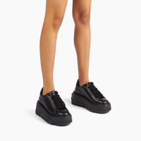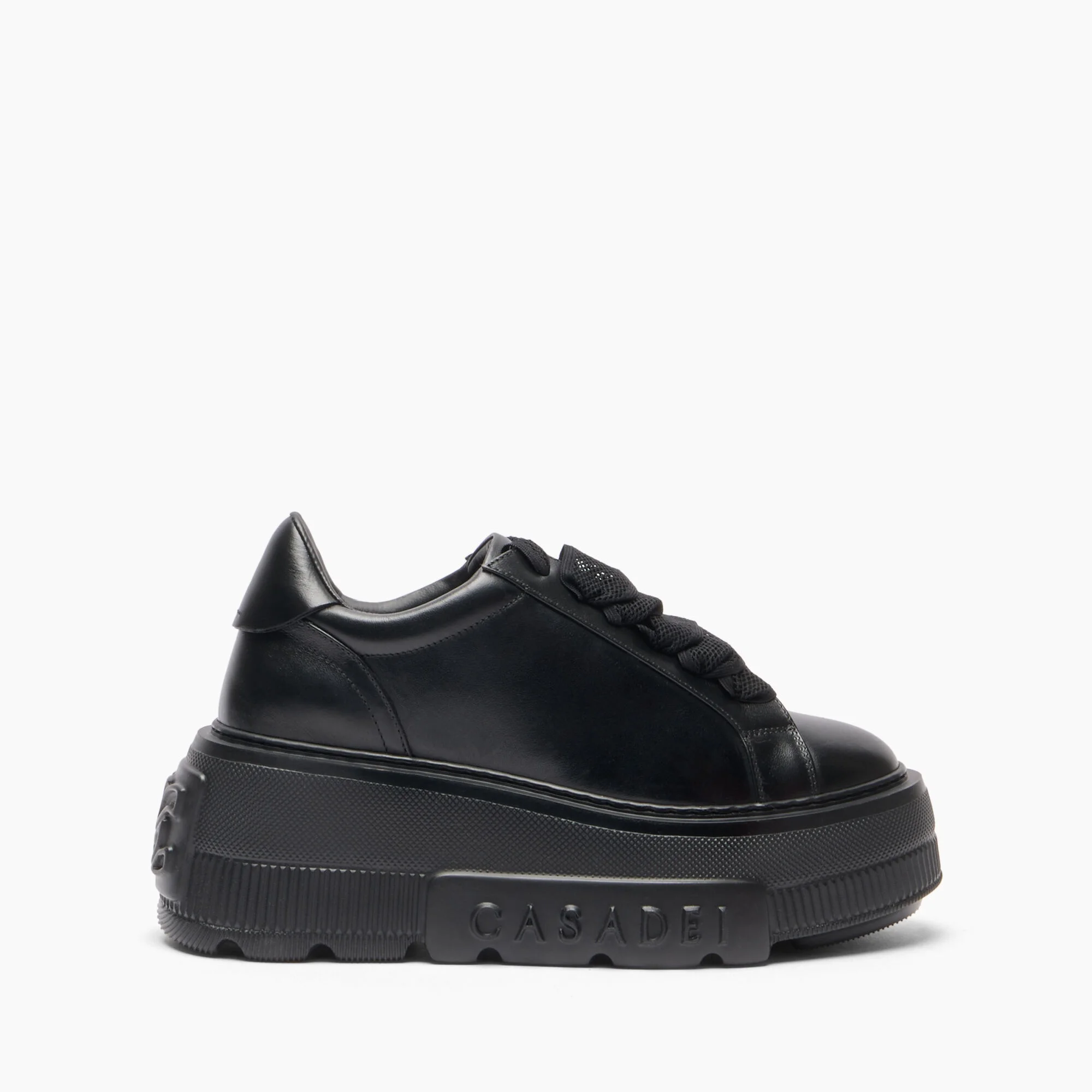 Cesare Casadei, creative director of the Maison, enhances the iconic Nexus sneaker with a touch of sophistication by introducing mesh laces that culminate in a large bow. Made of premium black leather, these sneakers are perfect for those who love height and comfort, thanks to the futuristic sole and the ultra-lightweight wedge with an innovative design. The iconic C-chain element and the oversized logo on the side add a distinctive touch, making the Nexus the flagship model of the Maison. Details - Calf leather - 100% Calf - Ultra-Light Wedge With The Casadei Logo On The Outside And C-Chain Logo Underneath The Sole In 70 Mm / 2.7 Inches. - 100% Made In Italy - Code: 2X044J070NSALEN9000