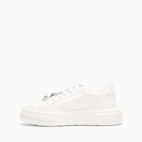 For the Fall Winter 2025-2026 collection, Cesare Casadei presents the iconic Off-road sneaker in white leather. This sneaker is perfect for the busy and adventurous life of modern women, reflecting the active aesthetic with a chic twist. The low-relief chain, now iconic in all Casadei rubber bottoms, is sculpted into the ground as in off-road tires to create grip. It features two C-Chain logos and a crystal that reflects glints of light with every step. Details - Calfskin leather100% calfOversized rubber shoe bottom with bas-relief chain 20 mm / 0.7 inches - Code: 2X075A0201C17959999