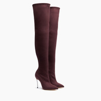 Made in Italy, these over-the-knee boots in ladybug-colored vegan stretch suede wrap around the leg like a second skin. Completing the look, the eye-catching, iconic Blade heel and sharp toe shape give a sleek, ultra-feminine effect. Details - Stretch vegan suede, enveloping with a two-tone effect - 100% Polyester - Blade heel in stainless steel 100 mm / 3.9 inches - 100% Made In Italy - Code: 1T069Y100MC21493810