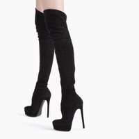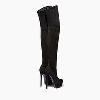 The seductive soul of the over-the-knee stretch suede boots is highlighted by the dizzying stiletto heel. The style is perfect for any occasion and enhances the female figure with a glam touch. Details - The seductive soul of the over-the-knee stretch suede boots is highlighted by the dizzying stiletto heel. The style is perfect for any occasion and enhances the female figure with a glam touch. - Code: 1T831E1401T00059000
