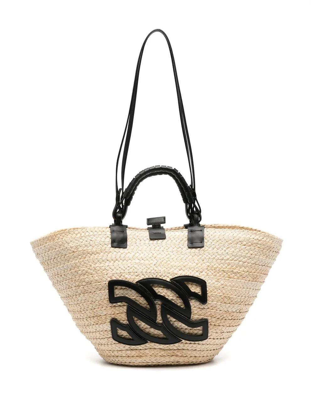 Panarea logo-applique tote bag Highlights - Beige/brown - Raffia - Interwoven design - Leather trim - Applique logo - T-bar fastening - Two rolled top handles - Thin shoulder straps - Main compartment - Debossed internal logo Made in Italy Composition Outer: Raffia 100%, Calf Leather 100% SIZE & FIT Model measurements Height 5 ft 10 in(1.78 m) Bust/Chest 31.49 in(80 cm) Hips 37 in(94 cm) Waist 23.62 in(60 cm) Measurement DEPTH 6.29 in(16 cm) HANDLE 4.72 in(12 cm) HEIGHT 12.99 in(33 cm) STRAP 33.07 in(84 cm) WIDTH 21.65 in(55 cm)