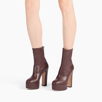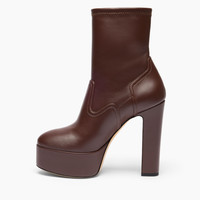 The Patty platform is a manifesto of never-shouted sensuality. Made entirely in Italy, this scenic model with a round, short and delicate shape is ideal for all those who love heights and all-day comfort. This practical saddle-colored vegan stretch nappa leather ankle boot is enhanced by chunky heel that balances the platform to ensure stability and practicality. Details - Stretch vegan nappa leather with a sporty and distinctly natural look - 60% Polyurethane and 40% Polyester - Vegan leather covered heel 130 mm / 5.1 inches with plateau 30 mm / 1.18 inches - 100% Made In Italy - Code: 1R532A1301LAABD2608