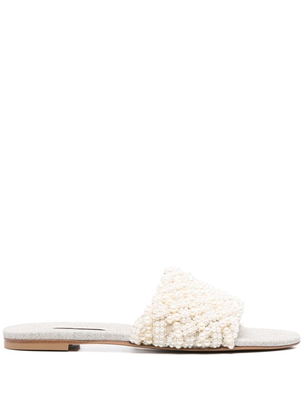 Pearlsway flat sandals Highlights - Light beige - Slip-on style - Rubber sole - Branded insole - Round open toe Made in Italy Composition Lining: Calf Leather 100%, Fabric 100% Sole: Calf Leather 100%, Rubber 100% Outer: Faux Pearl 100%
