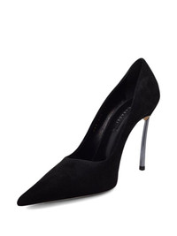 pointed stiletto pumps Highlights - Black - Pointed toe - Stiletto heel - Heel height: 100mm Made in Italy Composition Outer: Calf Suede 100% Lining: Calf Leather 100% Sole: Calf Leather 100% SIZE & FIT Measurement HEEL 3.93 in(10 cm)