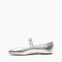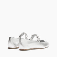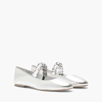 Discover the timeless elegance of ballet flats by Casadei. In silver laminated leather, this model is a must-have for all those who seek elegance without sacrificing comfort. The classic design is enriched by the modern touch of the crystals bracelet on the instep that shimmers the gleams of light with every step. The soft nappa leather wraps the foot, providing a perfect fit and a feeling of well-being throughout the day. Ideal for any occasion, from strolls around town to the most elegant events, these ballet flats easily fit any outfit, adding a hint of glamour. Details - leather coated with a metallic foil - 100% Kid - Leather Bottom. - 100% Made In Italy - Code: 1A283J0101C26769700
