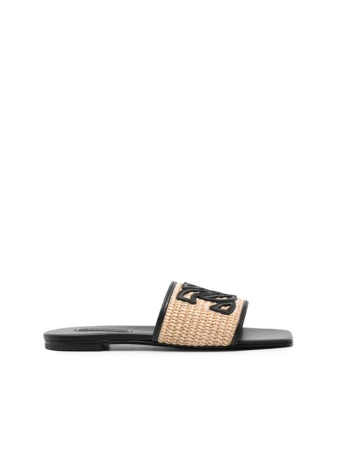 Portofino logo-patch slides Highlights - Black/beige - Calf leather/raffia - Woven raffia design - Leather trim - Square open toe - Logo patch to the front - Branded leather insole - Flat leather sole - Slip-on style Made in Italy Composition Outer: Calf Leather 100%, Raffia 100% Sole: Calf Leather 100% SIZE & FIT Measurement HEEL 0.66 in(1.7 cm) Sole height 0.51 in(1.3 cm)
