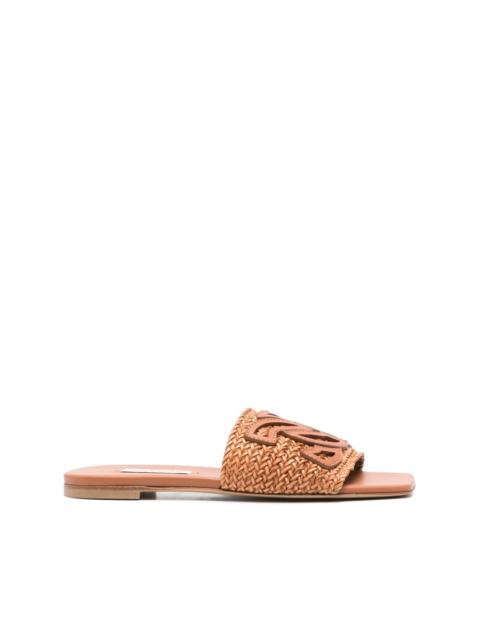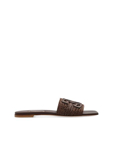 Portofino slides Highlights - Cognac brown - Woven raffia design - Single toe strap - Leather trim Made in Italy Composition Outer: Polyurethane 100%, Fabric 100% Sole: Calf Leather 100% Lining: Polyurethane 100%