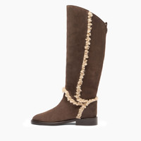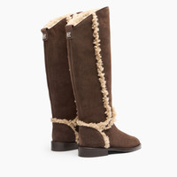 Casadei brings equestrian chicness to the city as a must-have style to face the winter. The Riderama, in carob-coloured suede calfskin, is a must-have for the season. The asymmetrical boot leg is knee-high and features sheepskin fur inserts. It features a leather sole. Details - Suede calfskin leather - 100% Calf - Leather bottom - 100% Made In Italy - Code: 1S371A0211C28842413