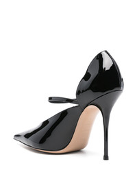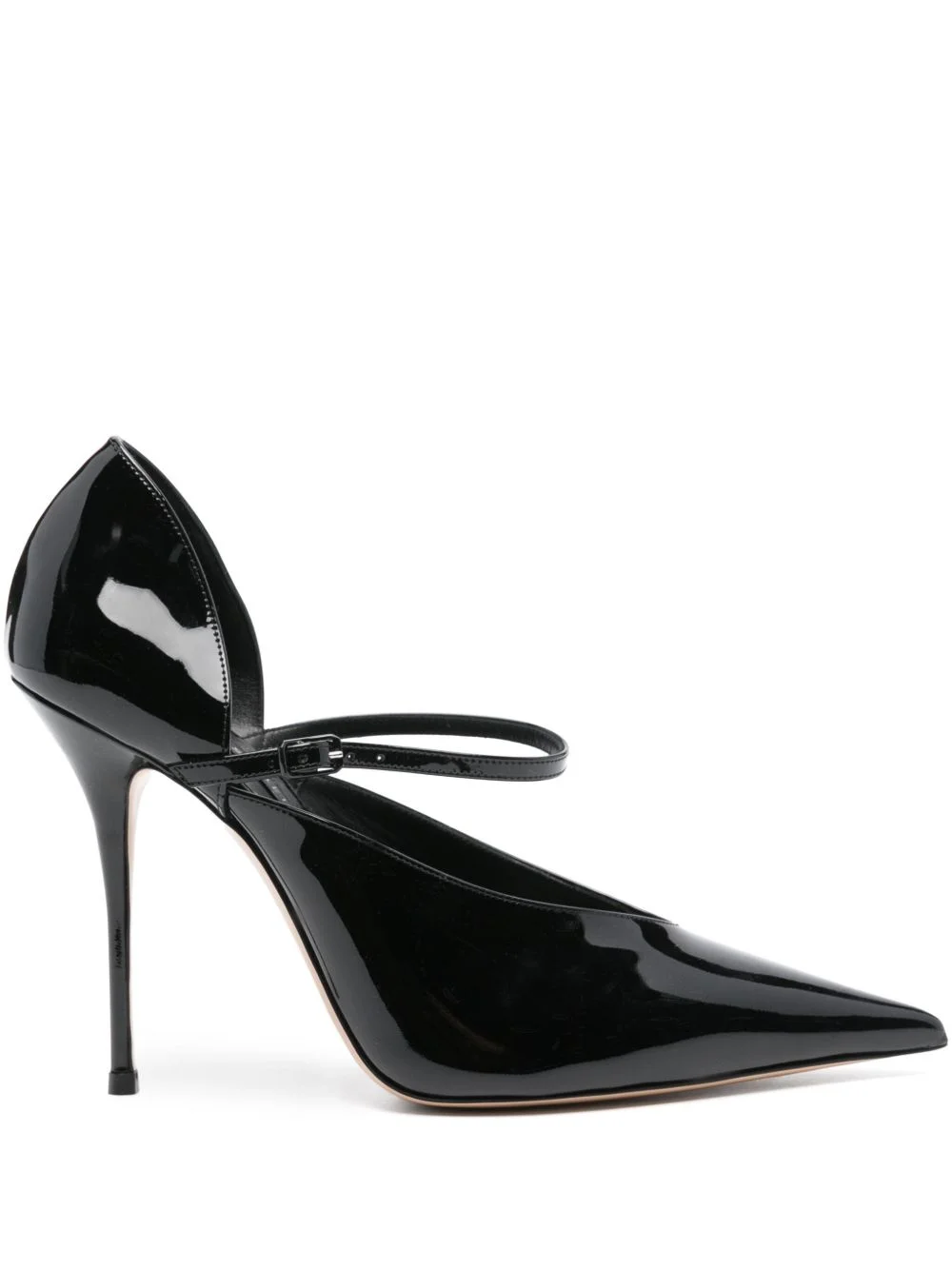 100mm Scarlet pumps Highlights - Black - Calf leather - Patent finish - Side buckle fastening - Pointed toe - Branded leather footbed - 100mm high stiletto heel - Leather outsole - This piece comes complete with a protective dust bag. Made in Italy Composition Lining: Calf Leather 100% Sole: Calf Leather 100% Outer: Patent Calf Leather 100% SIZE & FIT Measurement HEEL 4.33 in(11 cm)