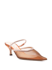 Scarlet Mimi 50mm mules Highlights - Calf leather - Mesh panelling - Pointed toe - Crystal embellishment - Single crystal embellished strap - Branded leather insole - Low kitten heel - Slip-on style Made in Italy Composition Outer: Fabric 100% Lining: Calf Leather 100% Sole: Calf Leather 100% SIZE & FIT Measurement HEEL 2.75 in(7 cm)