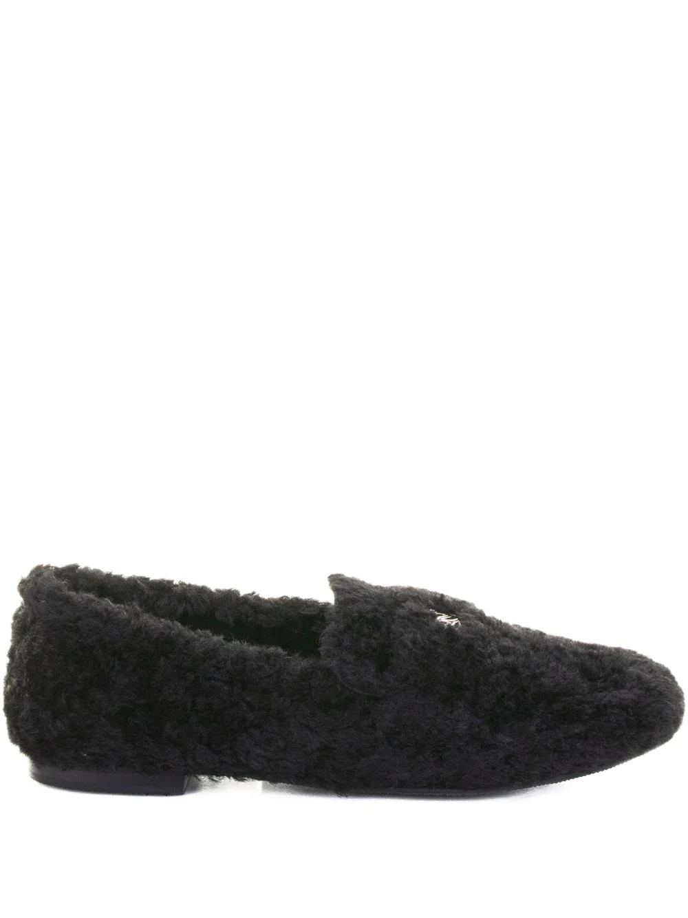 shearling slip-on loafers Highlights - Black - Shearling upper - Almond toe - Silvert-one logo plaque - Flat sole - Slip-on style Made in Italy Composition Outer: Nappa Leather 100%, Artificial Fur 100% Lining: Artificial Fur 100% Sole: Kid Leather 50%, Polyester 50%