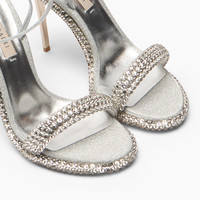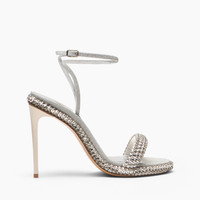 Cosmic elegance and minimal sensuality come together in the Sirio sandal, perfect for special occasions and glamorous evenings. Featuring a simple silhouette, this model stands out for its sparkling details: silver rhinestones embellish the shoe's profile. The ankle strap wraps around and decorates the foot with refinement. Perfect for completing an evening look with a touch of discreet but irresistible sparkle. Light and character for summer evenings and special occasions: a collection that blends comfort and sparkle in every step. Details - Upper in micro rhinestones, kid leather strap - 38% Polyamide .32% Polyurethane and 30%TPU with glass - Glitter Fabric Covered Wedge 80 Mm / 3.1 Inches - 100% Made in Italy - Code: 1L434B1001T05789700