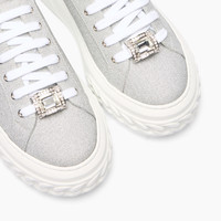 Key word of the season: glitter. For the new collection, the iconic off-road sneaker is embellished with silver glitter to infuse brightness and positivity into the fast-paced and adventurous life of the modern woman. The sparkle of the glitter and the solitaire caston CAS25 make it perfect for any occasion, day or night. The embossed chain, a distinctive feature of all Casadei rubber soles, is sculpted to resemble off-road tires, ensuring grip and style. Details - Glitter fabric effect - 38% Polyamide, 32% Polyurethane and 30% Thermoplastic polyurethane - 20Mm / 0.7 Inches Oversized Rubber Shoe Bottom With Bas-Relief Chain. - 100% Made In Italy - Code: 2X052J0201C2672A005