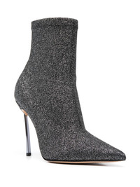 Super Blade Bisanzio 110mm boots Highlights - Jet black/silver - Calf leather - Glitter detailing - Sock-style ankle - Branded insole - Pointed toe - High stiletto heel - Slip-on style Made in Italy Composition Outer: Polyester 100% Sole: Calf Leather 100% Lining: Calf Leather 100% SIZE & FIT Measurement CIRCUMFERENCE 8.26 in(21 cm) HEEL 4.92 in(12.5 cm) HEIGHT 5.11 in(13 cm) Sole height 0.59 in(1.5 cm)