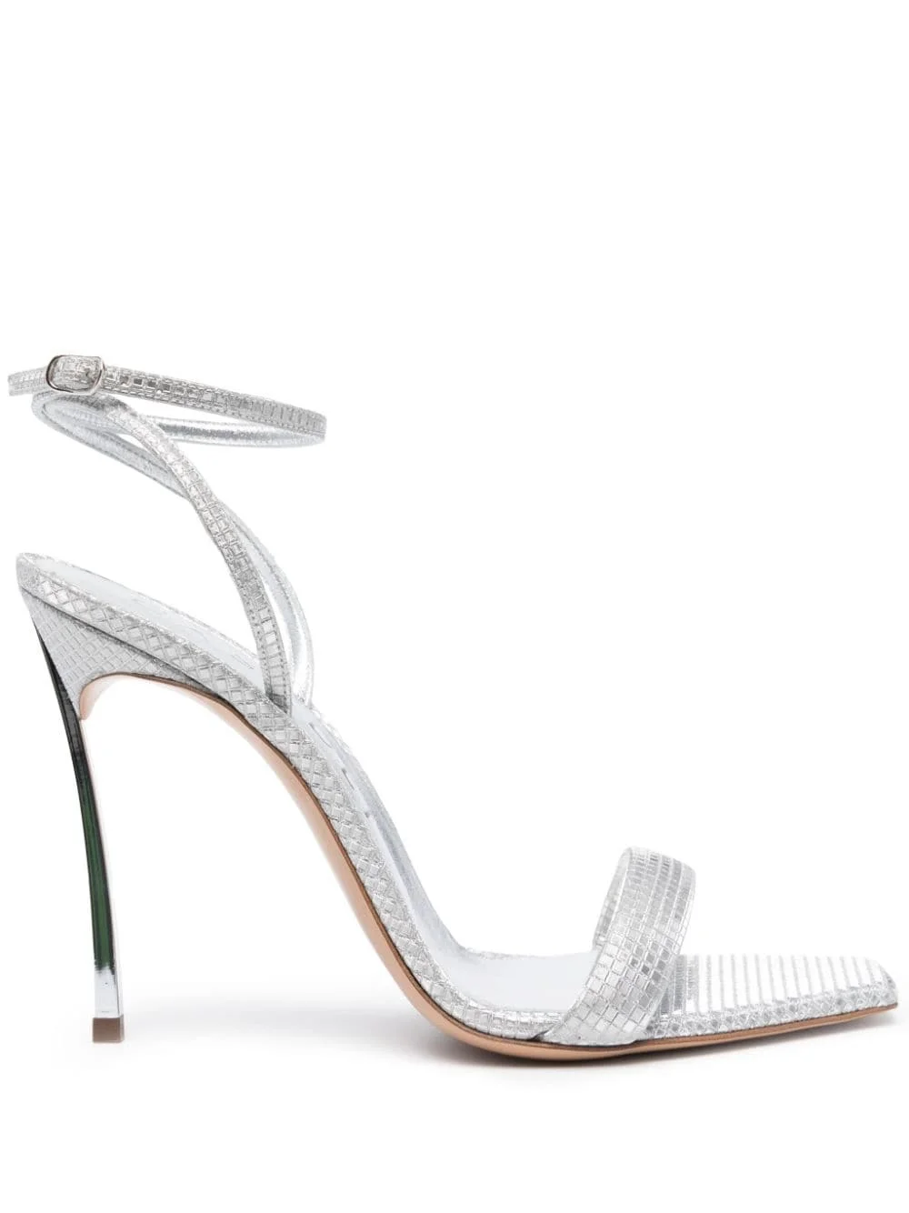 Superblade Diadema 100mm sandals Highlights - Silver-tone - Calf leather - Sequin embellishment - Glitter detailing - Square open toe - Single toe strap - Branded insole - High stiletto heel - Leather sole - Buckle-fastening ankle strap Made in Italy Composition Lining: Calf Leather 100% Outer: Polyamide 100% Sole: Calf Leather 100% SIZE & FIT Measurement CIRCUMFERENCE 8.66 in(22 cm) HEEL 4.52 in(11.5 cm) HEIGHT 1.79 in(4.5 cm)