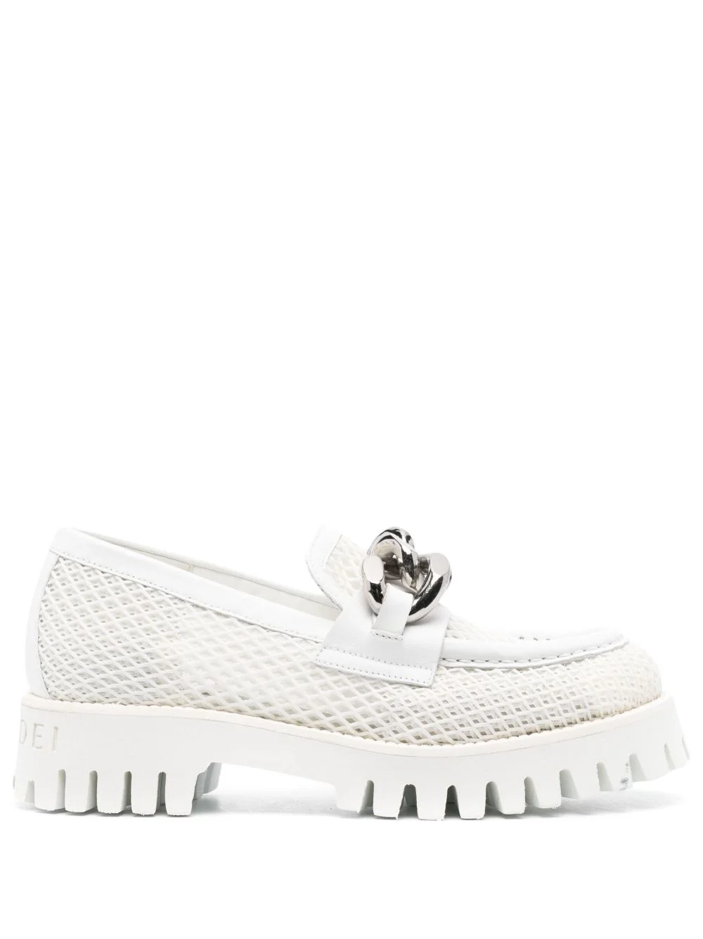 Tappeur netweb loafers Highlights - Optical white - Calf leather - Mesh detailing - Silver-tone hardware - Chain-link detailing - Almond toe - Slip-on style - Branded insole - Segmented ridged rubber sole Made in Italy Composition Leather 100% SIZE & FIT Measurement HEEL 1.77 in(4.5 cm) Sole height 1.18 in(3 cm)