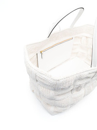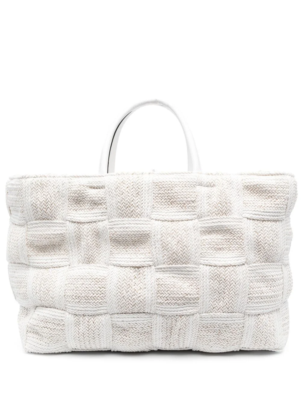 Twiga Shoppers tote bag white calf leather interwoven design two top handles internal zip-fastening pocket main compartment Made in Italy Composition Outer: Calf Leather 100%, Fabric 100% SIZE & FIT Model measurements Height 5 ft 11 in(1.8 m) Bust/Chest 31.49 in(80 cm) Hips 36.22 in(92 cm) Waist 25.59 in(65 cm) Measurement DEPTH 8.66 in(22 cm) HANDLE 6.29 in(16 cm) HEIGHT 11.81 in(30 cm) WIDTH 17.71 in(45 cm)