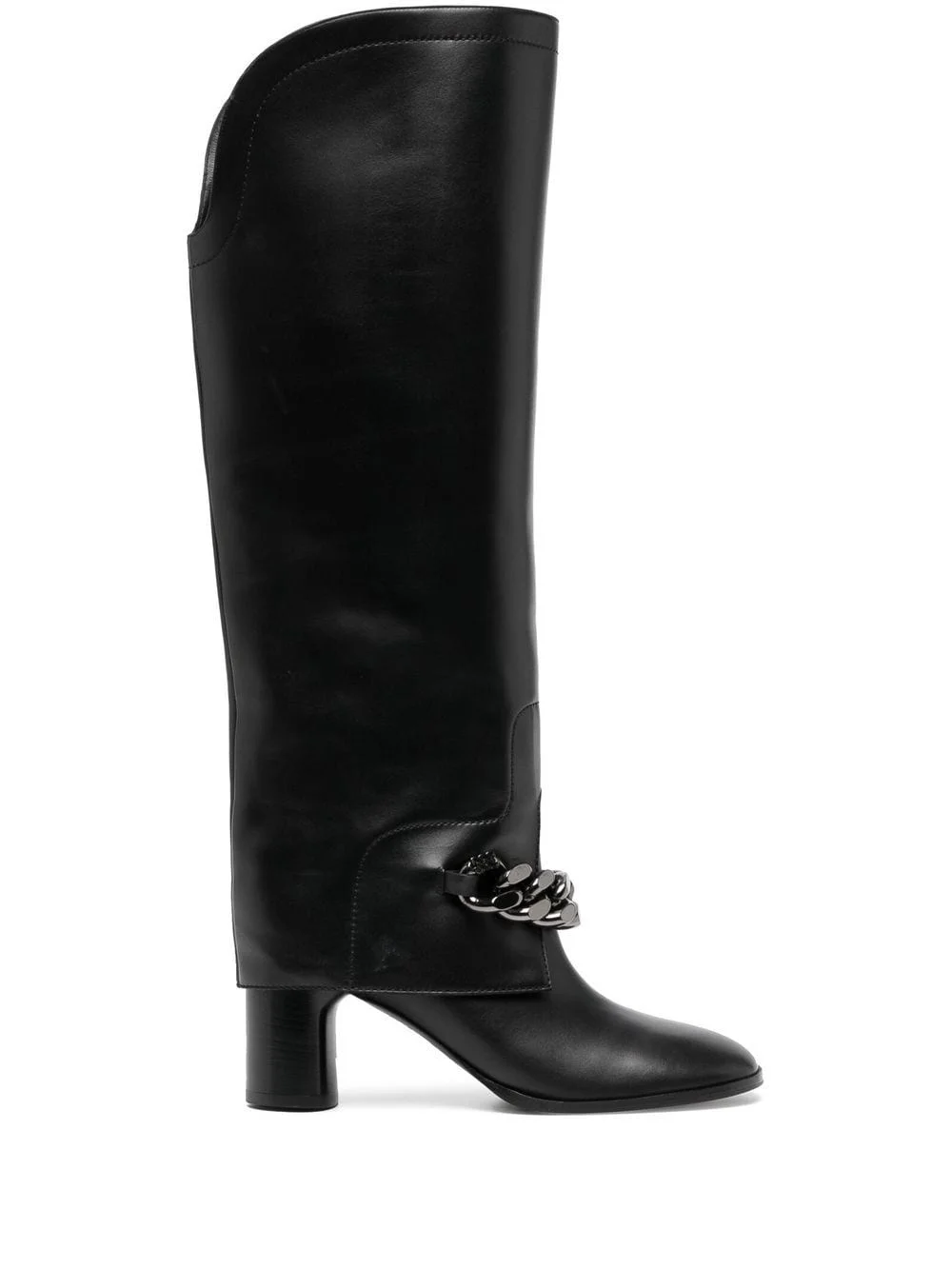 Varenne 100mm chain-link trim boots black leather chain-link trim round toe leather lining knee-length high block heel leather sole Made in Italy Composition Lining: Leather 100% Sole: Leather 100% Outer: Leather 100% SIZE & FIT Measurement HEIGHT 1.96 in(5 cm) Weight 42 g(42 g)
