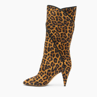 Inspired by an archival icon from 1982, the Malesia boot is reimagined for the Fall/Winter 25-26 collection. Clean, essential lines meet a wild spirit with leopard-print suede, striking a bold yet refined balance. The 8 cm Venus cone heel—a signature of the Maison—adds both height and stability, making it ideal for elegant wear from day to night. Contrasting trims highlight the boot’s sophisticated construction, enhancing the silhouette with a graphic touch. Details - Suede with leopard-effect digital photo print, nappa leather - 50% Calf and 50% Kid - Leather covered heel 80 mm / 3.1 inches - 100% Made In Italy - Code: 1S403A0801T0540B032